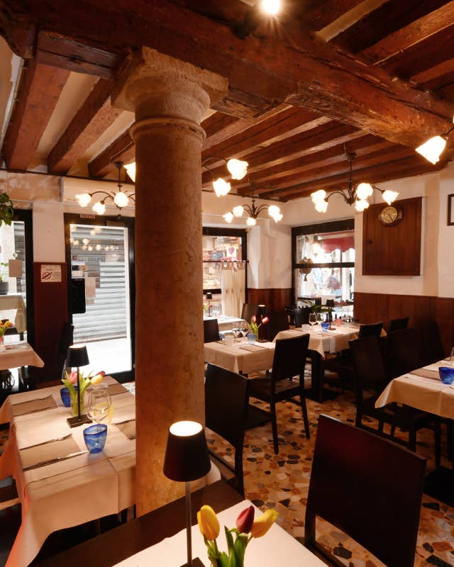 Sapori Veneziani. La tradizione prende sapore. In un ambiente accogliente e intimo, potrai gustare i piatti simbolo della cucina veneziana, realizzati con ingredienti di prima qualità. Ti accompagneremo alla scoperta di specialità come il baccalà mantecato, le sarde in saor, gli spaghetti al nero di seppia e un gustoso risotto di mare. Ricette che raccontano il fascino del mare, la ricchezza della storia e il calore di casa, per un’esperienza autentica e indimenticabile.